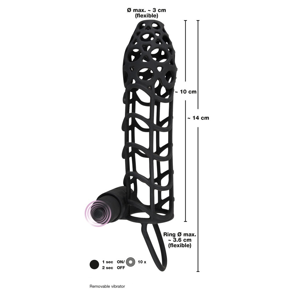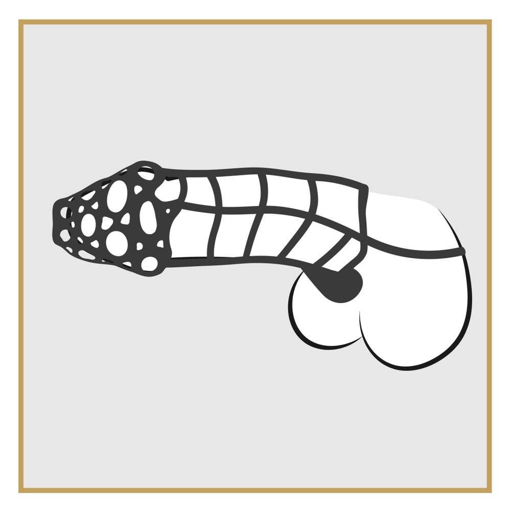 Make your best asset the centre of attention with this black, velvety soft penis sleeve with a fascinating lattice pattern and testicle ring.